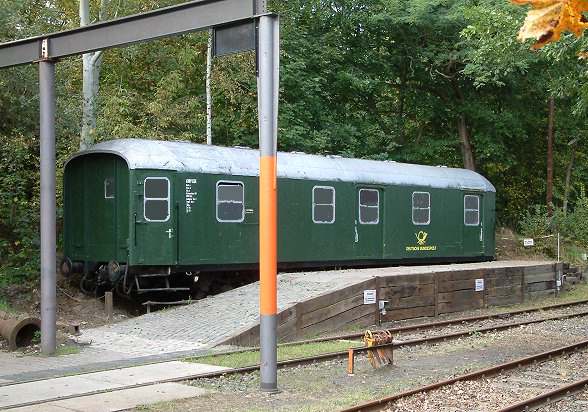 Der Postwagen der Gattung Post 2a/14 kam im Jahre 1984 als zweites Fahrzeug (nach der Kleinlok Kö 0128) in den Bestand der MKB.