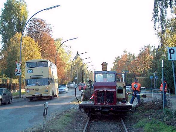 Zu den zeitweise recht lästigen Pflichten einer Eisenbahn gehört auch die Streckenpflege. Als Mitbenutzer der Anlagen der Zehlendorfer Eisenbahn haben wir es im Herbst 2003 übernommen, die Gleisanlagen von störendem Bewuchs zu befreien. Vor einigen Jahren reichte hierzu noch der regelmäßige Einsatz chemischer Mittel (vgl. Seite 3 unseres Bilderbogens), nunmehr kamen Sägen, Astscheren und Motorsensen zum Einsatz.
