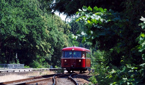 Und diesmal gab es etwas Besonderes. Aus Anlass des 180-jährigen Bestehens der ersten preußischen Eisenbahn (Berlin-Potsdam) haben die Berliner Eisenbahnfreunde eine Schienenbus-Sonderfahrt von Berlin-Gesundbrunnen nach Lichterfelde West mit ihrem VT 95 9396 veranstaltet.