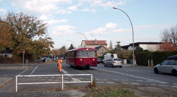 Der Triebwagen ist abfahrbereit zur Fahrt nach Steglitz ...